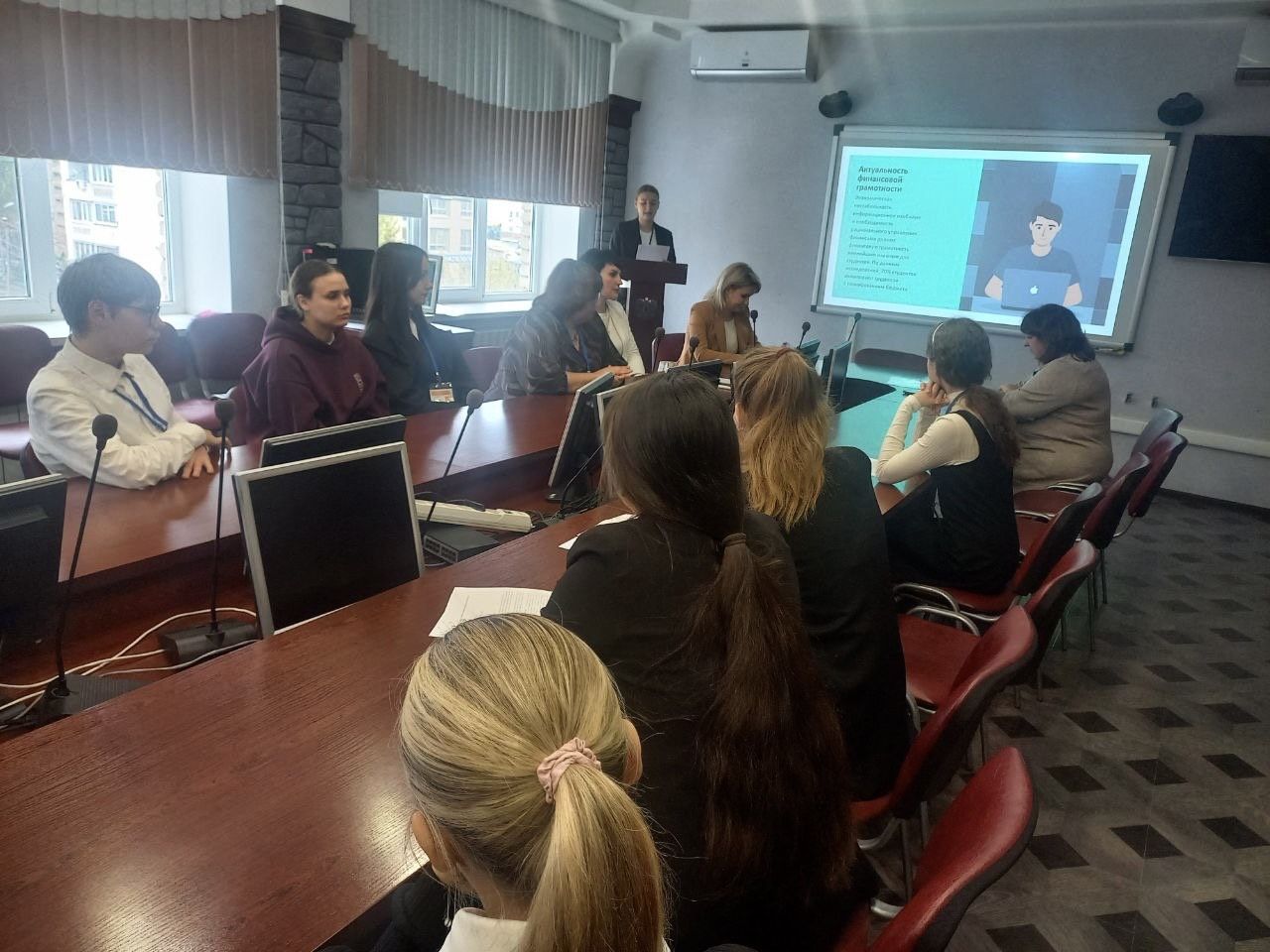 В числе выступающих были студенты с докладами о профессиональных качествах, образовательной базе и роли кредитных организаций в финансовой грамотности.