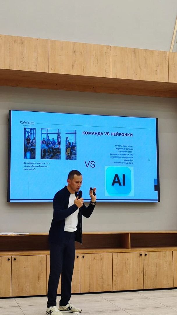 27 октября 2025 года в Молодежном центре "Коса" состоялось практическое мероприятие — мастер-класс, организованный компанией МИРРстрой. Во встрече приняли участие студенты 3 и 4 курса специальности "Графический дизайн". Спикером выступил Эдгар Кирьяков, который рассказал о внедрении искусственного интеллекта (ИИ) в современные рабочие процессы.